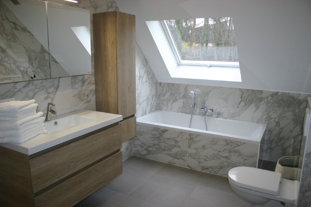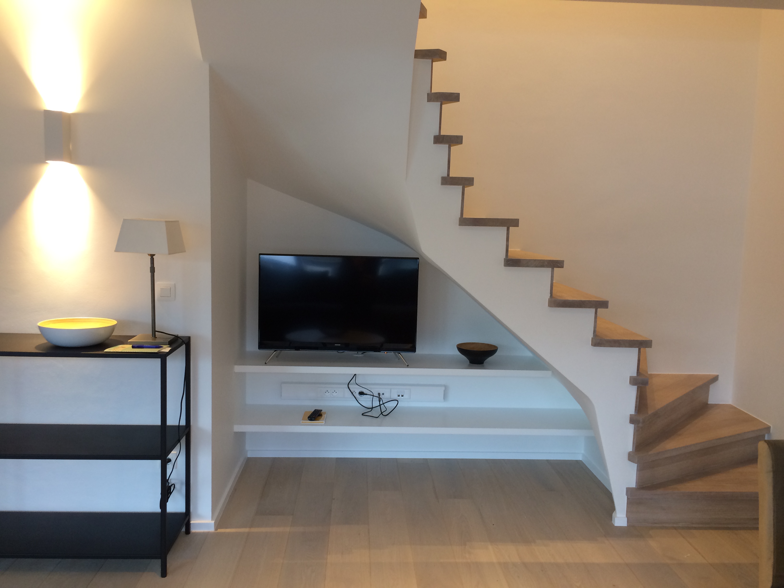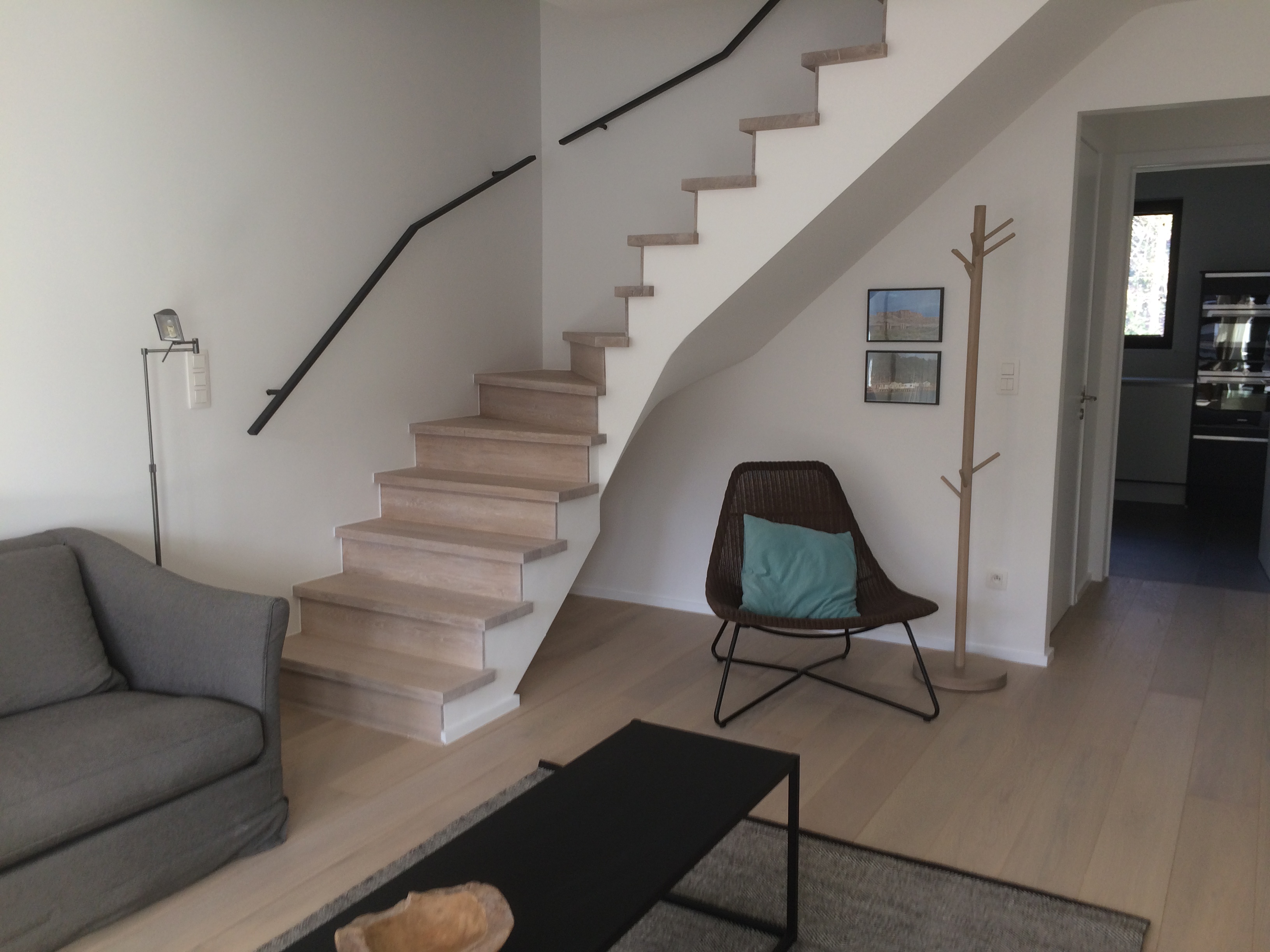 Each duplex apartment has a unique combination of a warm chic style and a high level of comfort. The open living area is bright and spacious with large windows. You can enjoy a modern well equipped kitchen that flows into the living area. The bathrooms have a large walk-in shower, some also have a bath, all finished with marble. The toilet is separate and accessible from the hallway. Each apartment has a very pleasant warm feeling, lots of space, and is constructed with quality materials and great workmanship. Located both near the centre (5 minutes by bike) and the green surrounding of Leuven (such as Arenberg castle, the forest, …). Close to all science faculties of the University, IMEC, Sciencepark Arenberg and Industriepark Haasrode.